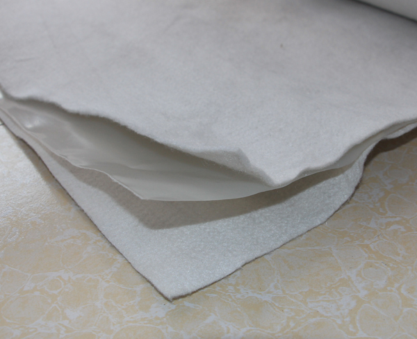 复合土工膜施工现场其主要机理是以塑料薄膜的不透水性隔断土坝漏水通道,以其较大的抗拉强度和延伸率承受水压和适应坝体变形;而无纺布则是一种高分子短纤维化学材料,对防渗薄膜起到一定的保护作用,并有助于和坝体的结合。